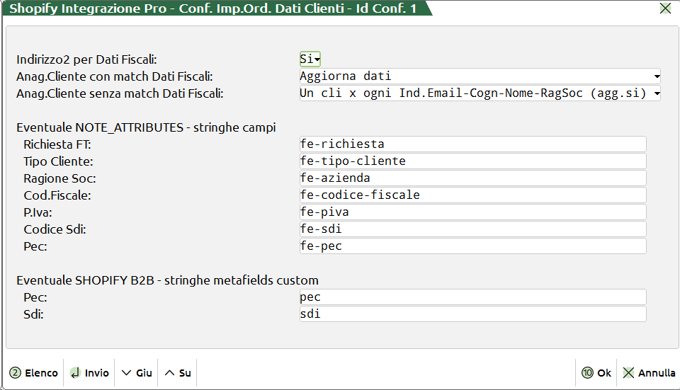 Importazione ordini, dati cliente e possibilità di non usare il campo shopify address2 per i dati fiscali.