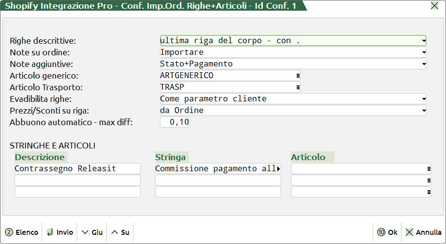 Import Ordini, utilizzo dell'Articolo Generico anche nel caso di riga ordine Shopify senza Sku e non utilizzo della funzionalità "Stringhe e Articoli".