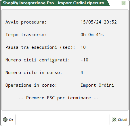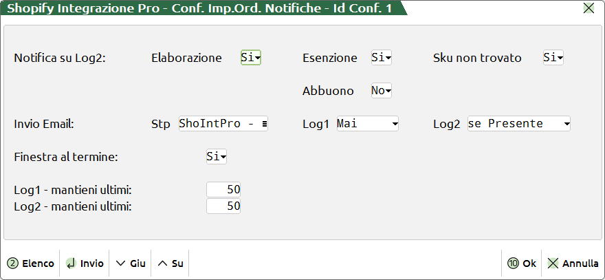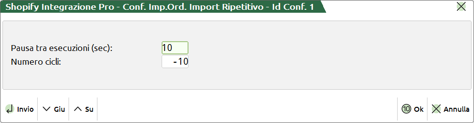 Possibilità di Invio email automatico immediato alla fine delle elaborazioni (consigliato) senza dover pianificare o eseguire un'ulteriore procedura. Nuova funzione di "Import ordine ripetitivo" per riduzione rischio di invio quantità articolo non corretta da avviare contemporaneamente all’Aggiornamento-Creazione Articoli. Creazione clienti e CodiceSdi e Pec tramite campi personalizzati su Shopify (valori in array note_attributes). Supporto di 10 pagamenti anche personalizzabili con indicazione della stringa passata da Shopify. Righe descrittive in testa o piede del corpo documento. Possibilità di import Note ordine shopify nel corpo documento. Possibilità di impostazione evadibilità righe anche sempre a Evadibili o Sospese.