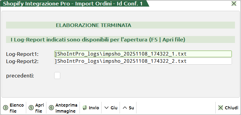 Import Ordini, pagamento ed indicazione della stringa presente sull'ordine nel log-report1 ed in caso di problemi anche su log-report2.