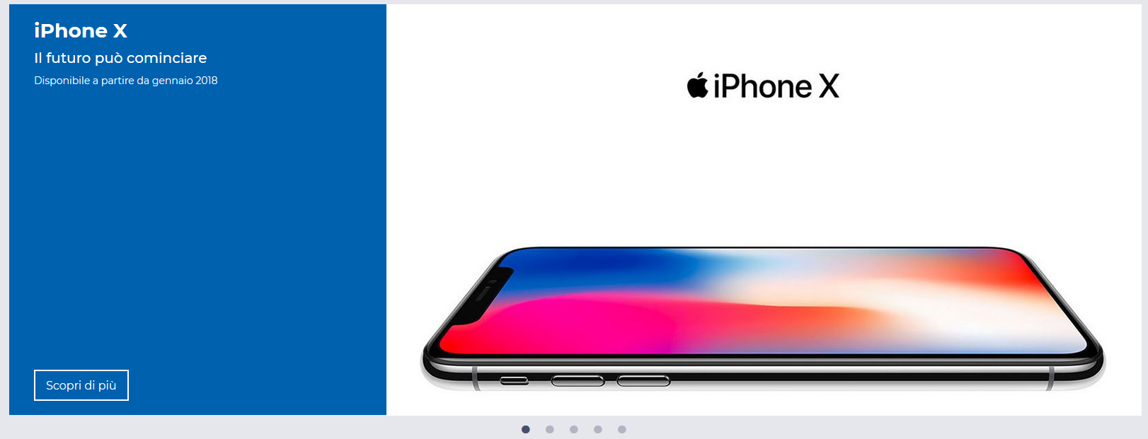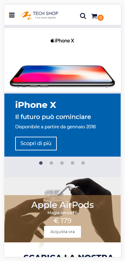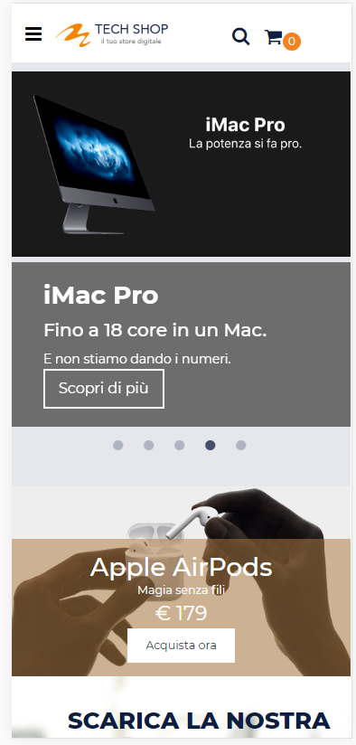 Slider Boxed con 5 Sezioni a scorrimento orizzontale mediante barra di navigazione rapida.
