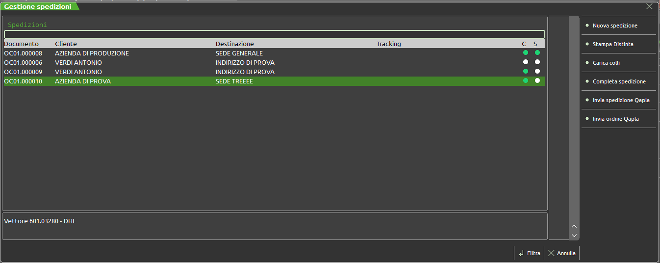 La spedizione completata puo' essre spedita come ordine al portale Qapla.