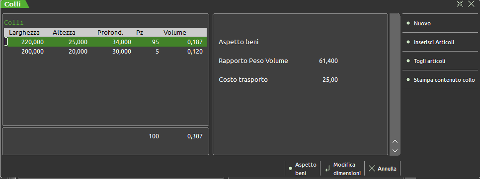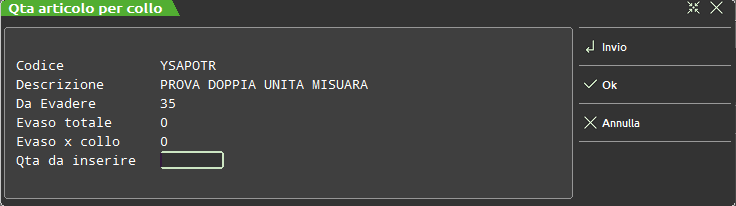 L'app permette di controllare quali documenti devono essere inviati al reparto preposto alla preparazione dei colli. L'operatore puo' : creare il collo; tracciare quali prodotti ha inserito nel collo; stampare una distinta collo col dettaglio dei prodotti inseriti; completare la spedizione modificando i dati di spedizione nel documento di magazzino.