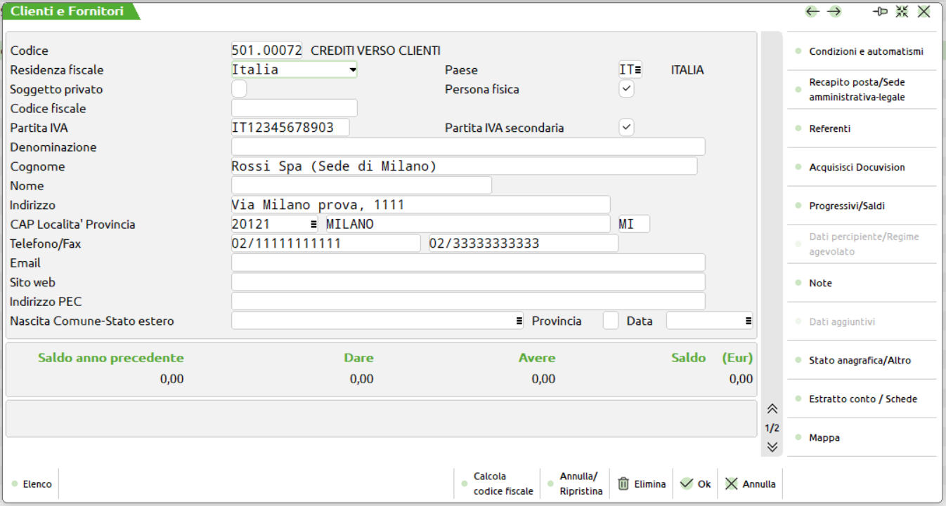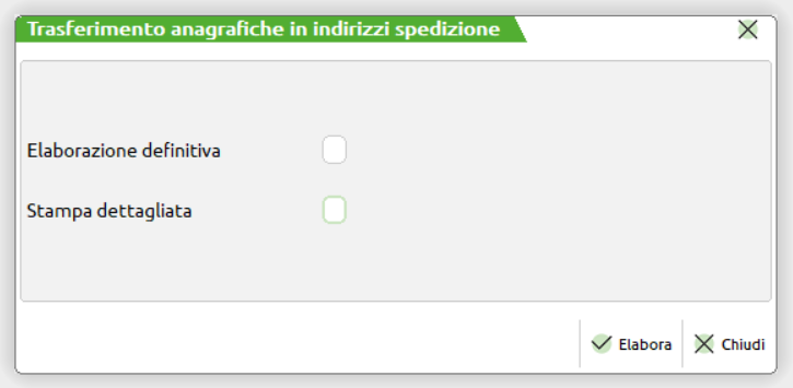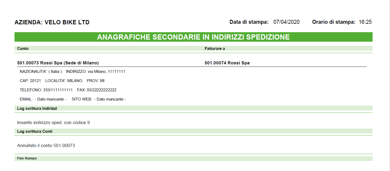 L’Applicazione crea delle anagrafiche di indirizzi di spedizione partendo delle anagrafiche secondarie/duplicate (dalla Rubrica Clienti/Fornitori), ovvero quei conti che hanno la partita IVA secondaria = “S” e un conto “Fatturare a”, e non sono state mai movimentate.