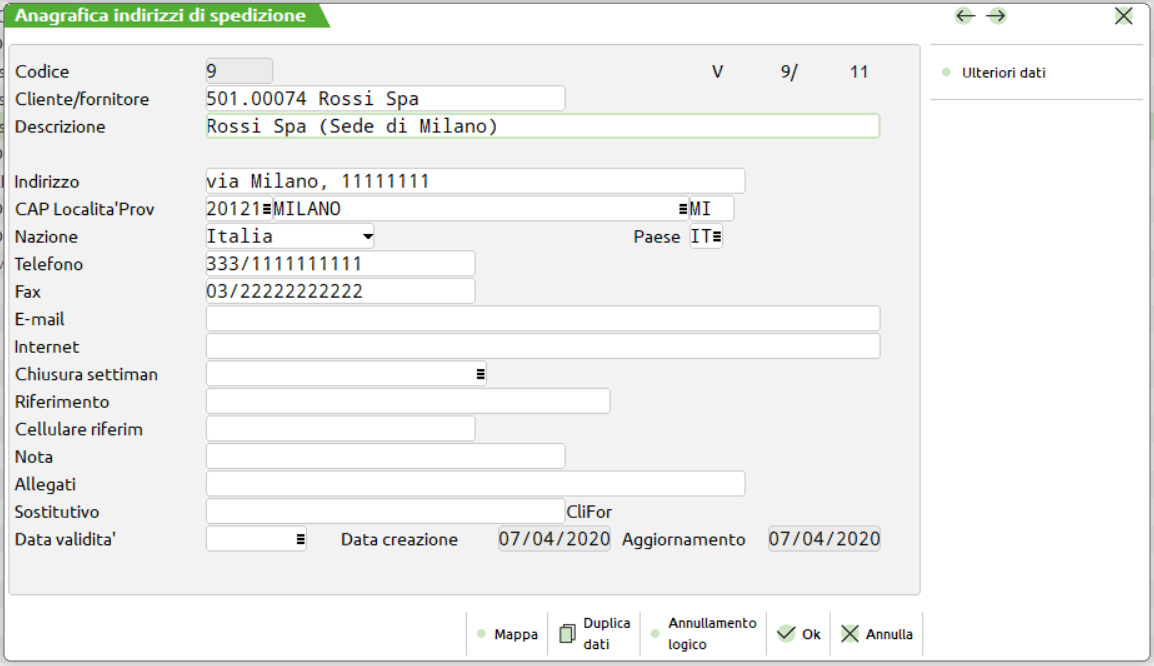 L’Applicazione crea Indirizzi di spedizione partendo delle anagrafiche Clienti secondarie/duplicate