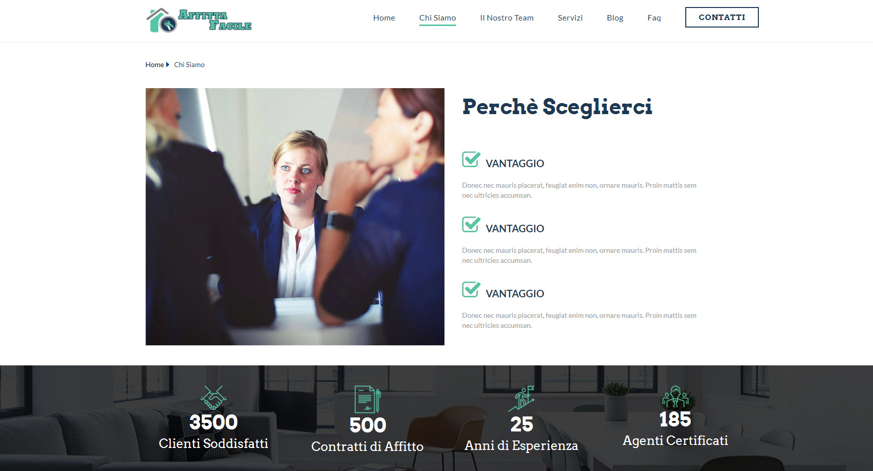 Il template Affitta Facile può essere utilizzato anche per altre tipologie di azienda. Il template ha un layout responsive ed è adatto per i settori edilizia e affitti.