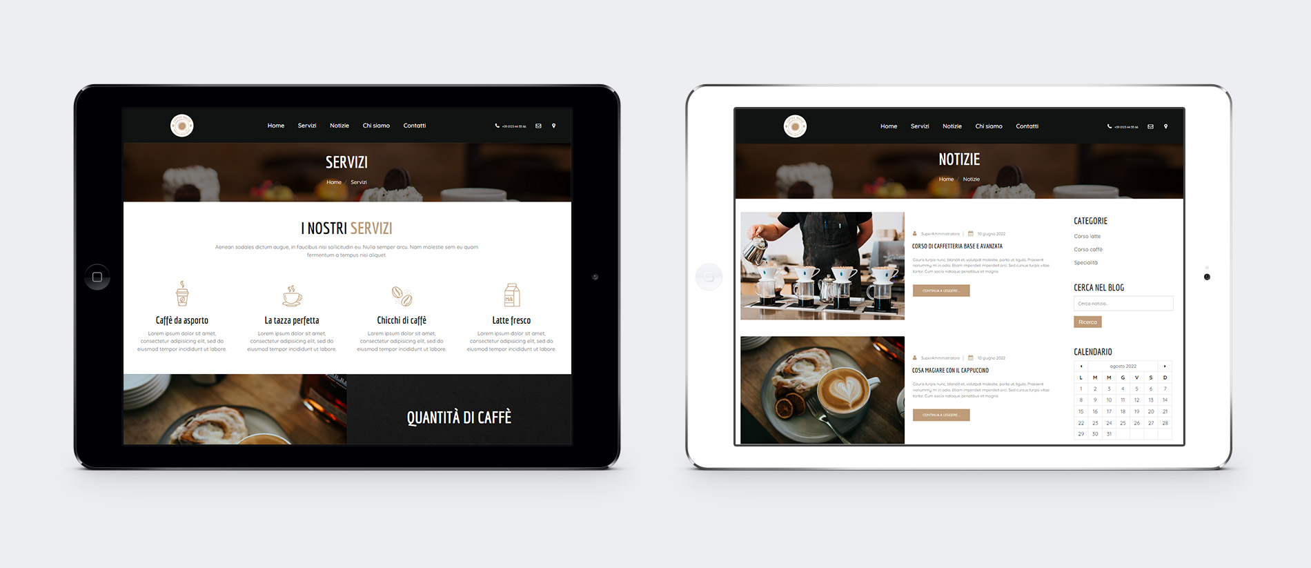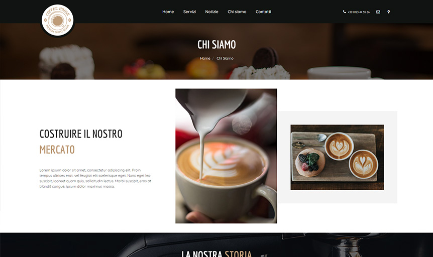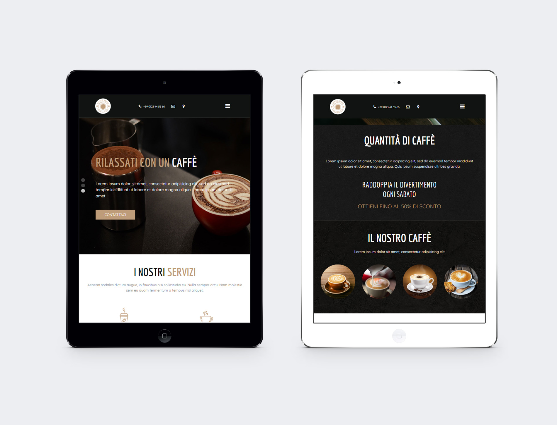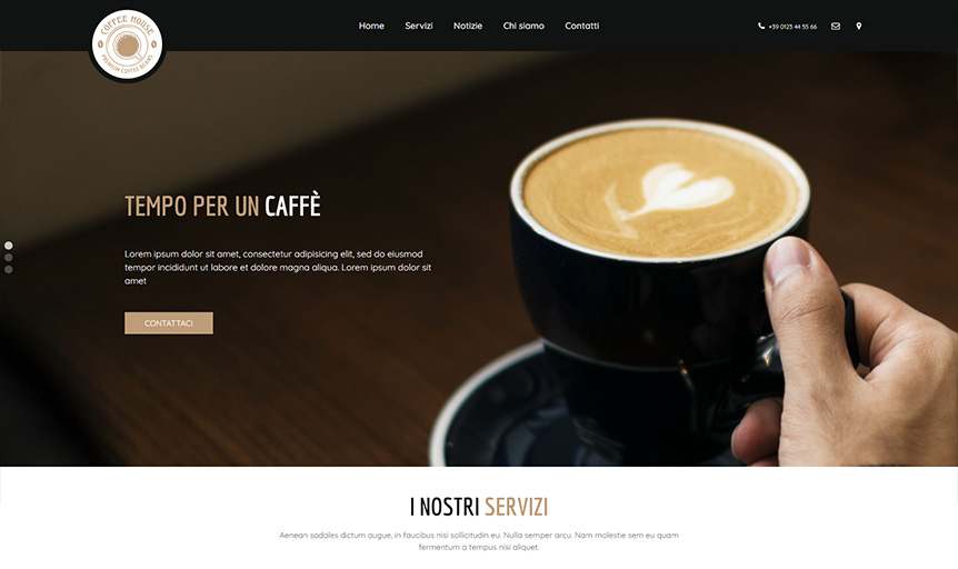 Coffee House ha un layout responsivo ed è stato pensato per i siti vetrina creati con Passweb.