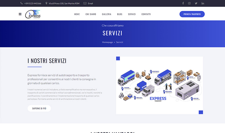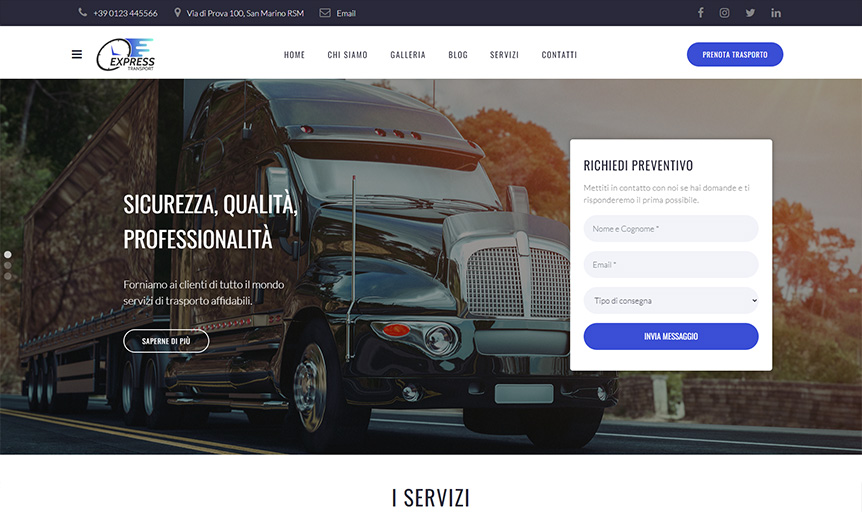 EXPRESS Transport ha un layout semplice e responsivo ed è stato pensato per i siti vetrina creati con Passweb.