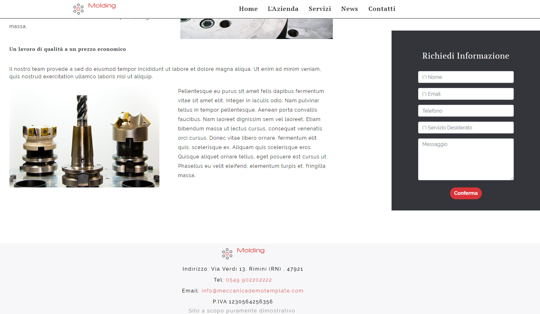 Il template Meccanica ha un layout di ultima generazione ed è stato realizzato per aziende industriali e di manodopera.