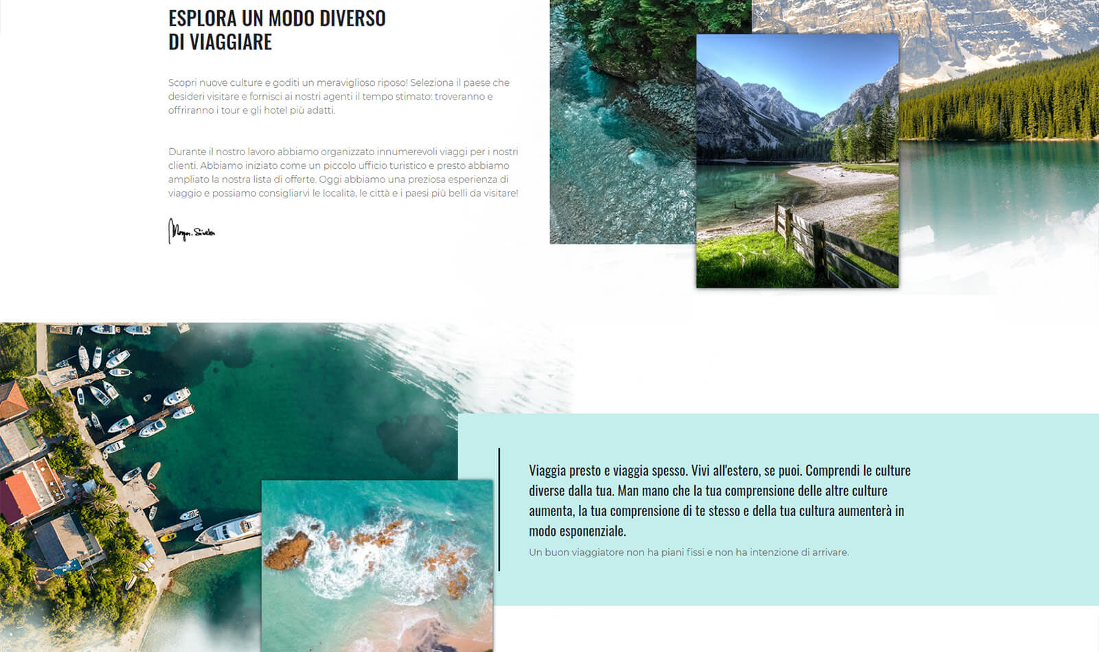 Travel Experience è un template di ultima generazione pensato per i siti vetrina, ma anche utilizzato per siti Hotel e con tantissime immagini, ma si adatta facilmente a qualsisasi tipologia di sito vetrina e dispone di tantissime nuove e utili funzioni.